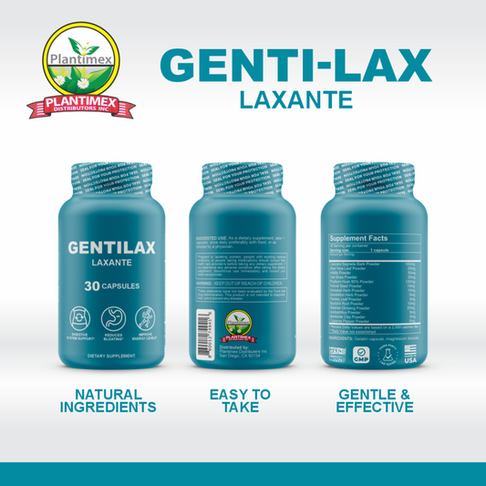 Genti-Lax Laxative - Gentle Digestive Support with 30 Capsules - Reduces Bloating, Improves Energy, and Promotes Regularity - Dietary Supplement