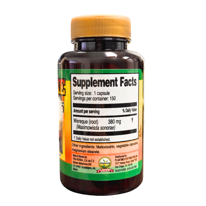 Plantimex Wereke Root Capsules are made from Maximowiczia sonorae, a traditional herb native to Mexico and valued for its natural properties that support general wellness and internal balance.